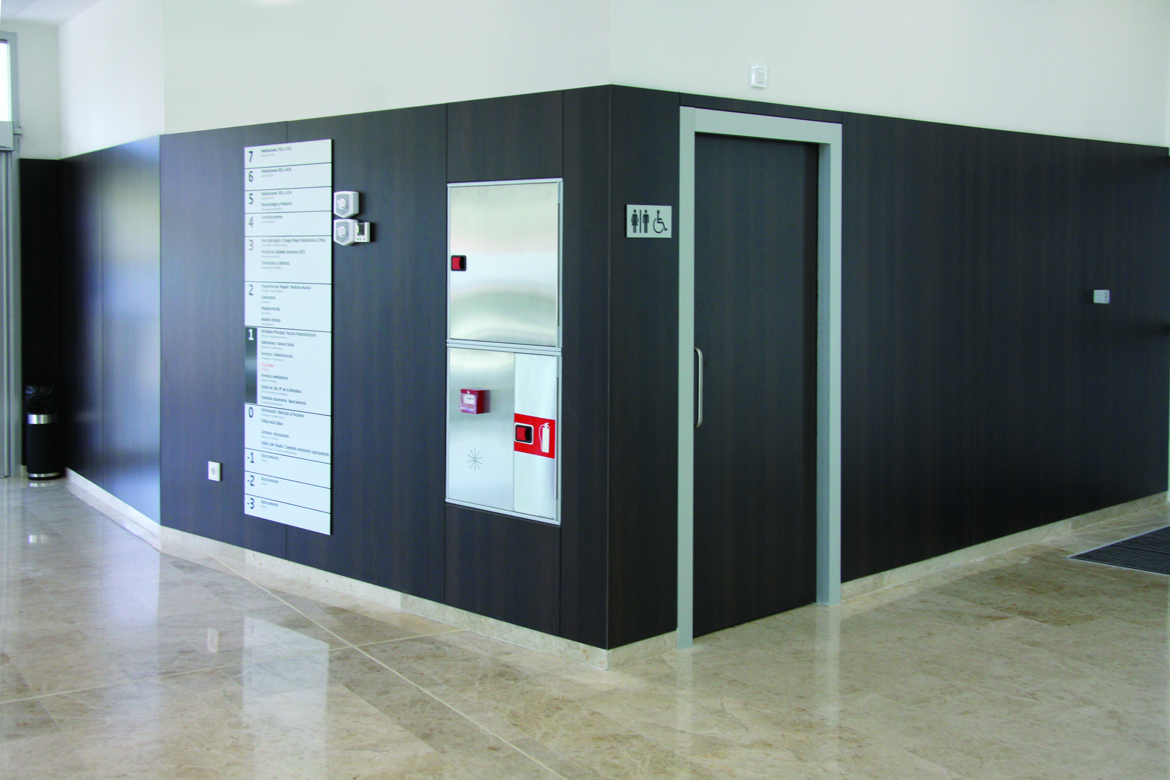 Soleco frames are finished in textured matt or high Gloss colours. A full range of veneers, laminates or paint finishes can be specified for the doors with vision panel and hardware options.