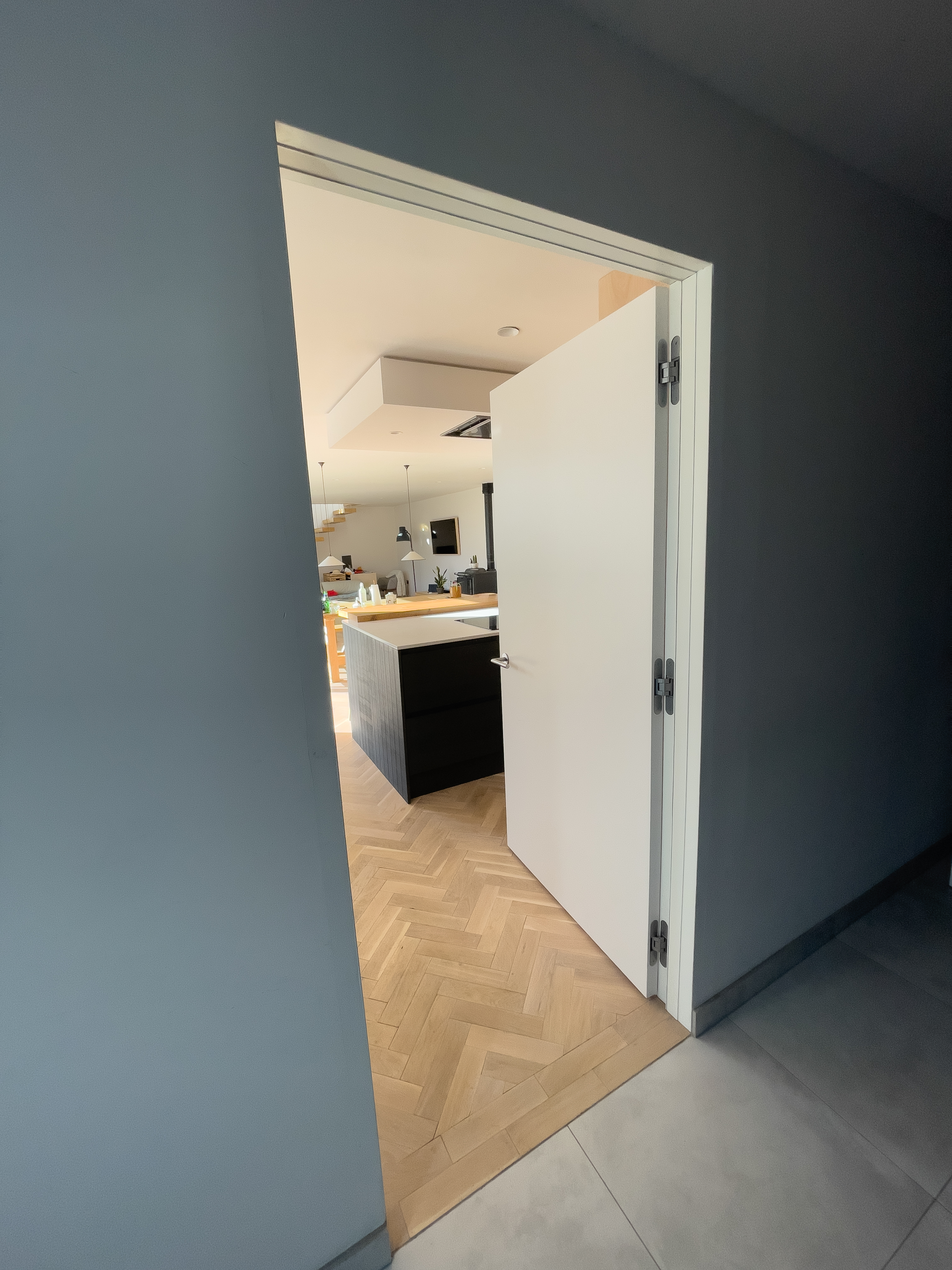 The Soleco Frame is a ready-to-install door frame with pre-installed hinges, lock strikes, and seals, and comes pre-painted. Often, no first fix is needed, as the frame supports the door on its own. When ordered as a configured package, on-site work is minimal. It functions like any standard door frame.