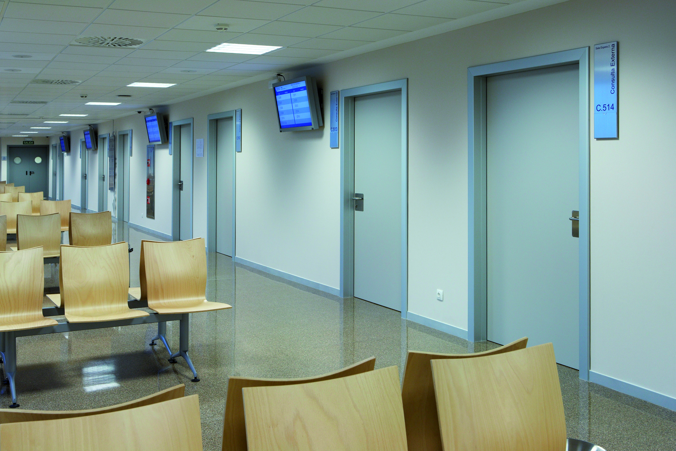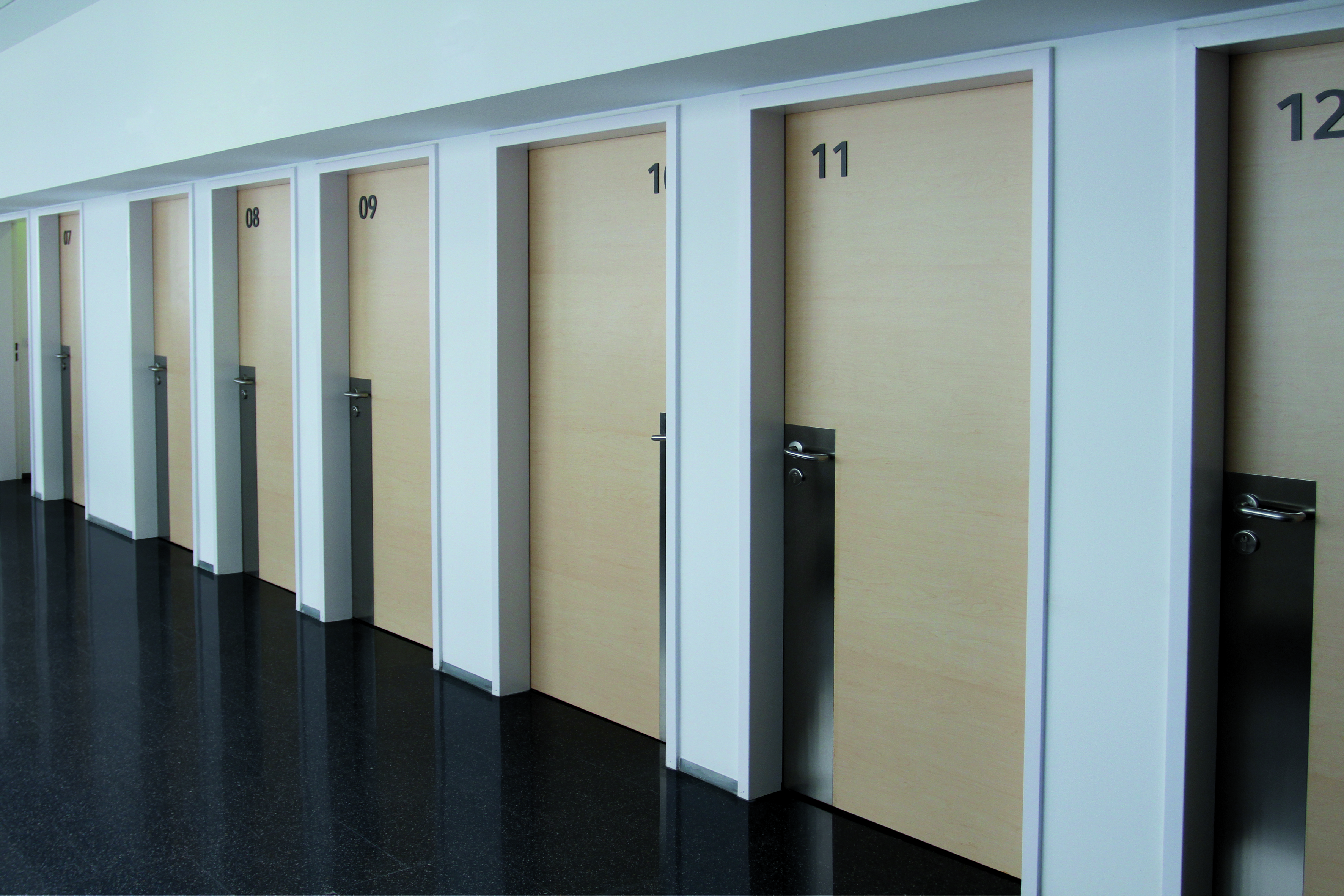 Soleco frames are finished in textured matt or high Gloss colours. A full range of veneers, laminates or paint finishes can be specified for the doors with vision panel and hardware options.