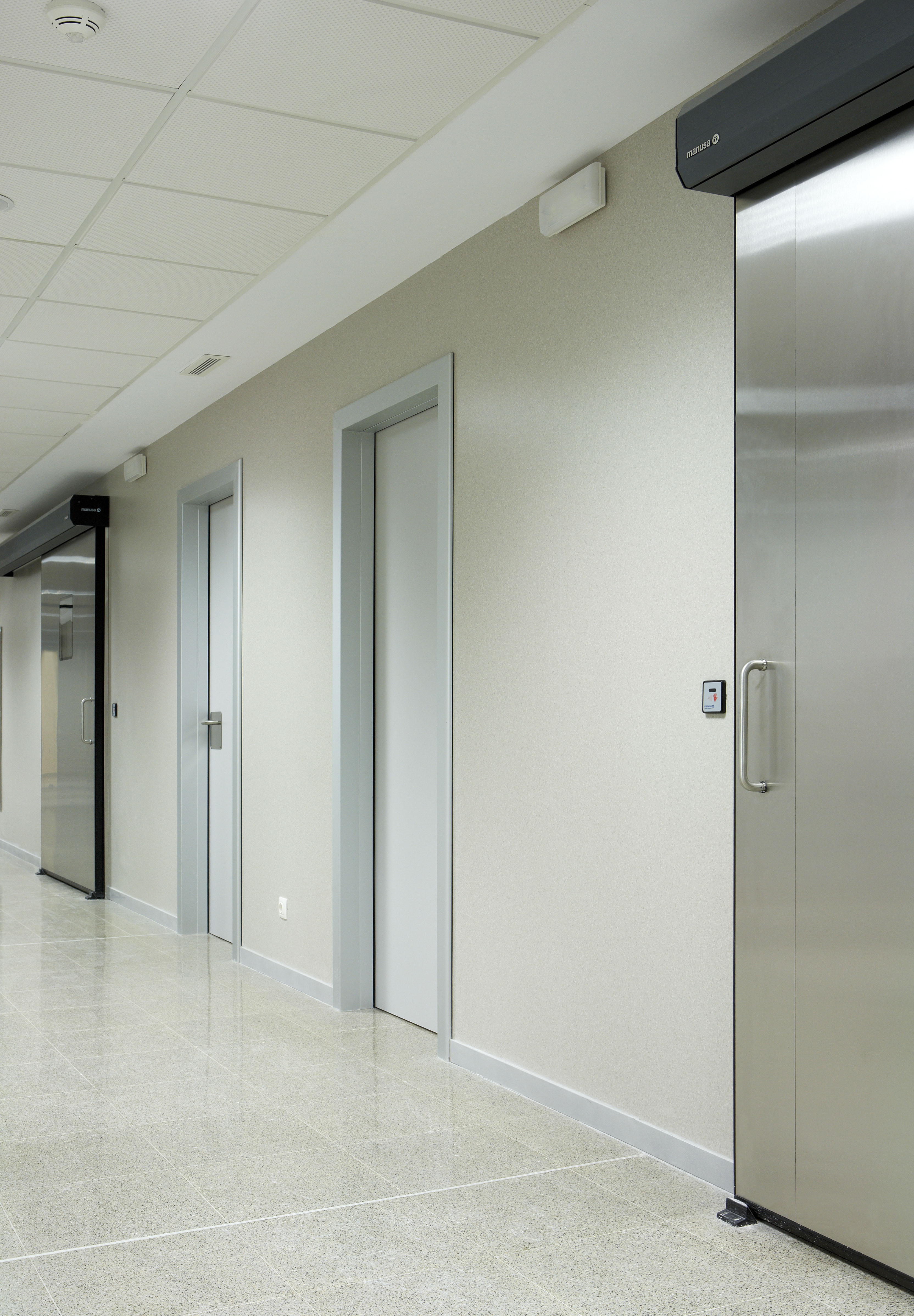 Hygienic Stainless steel & anti-bacterial coatings are available. The architrave forms part of the frame so there are no additional parts creating hard to clean joins.