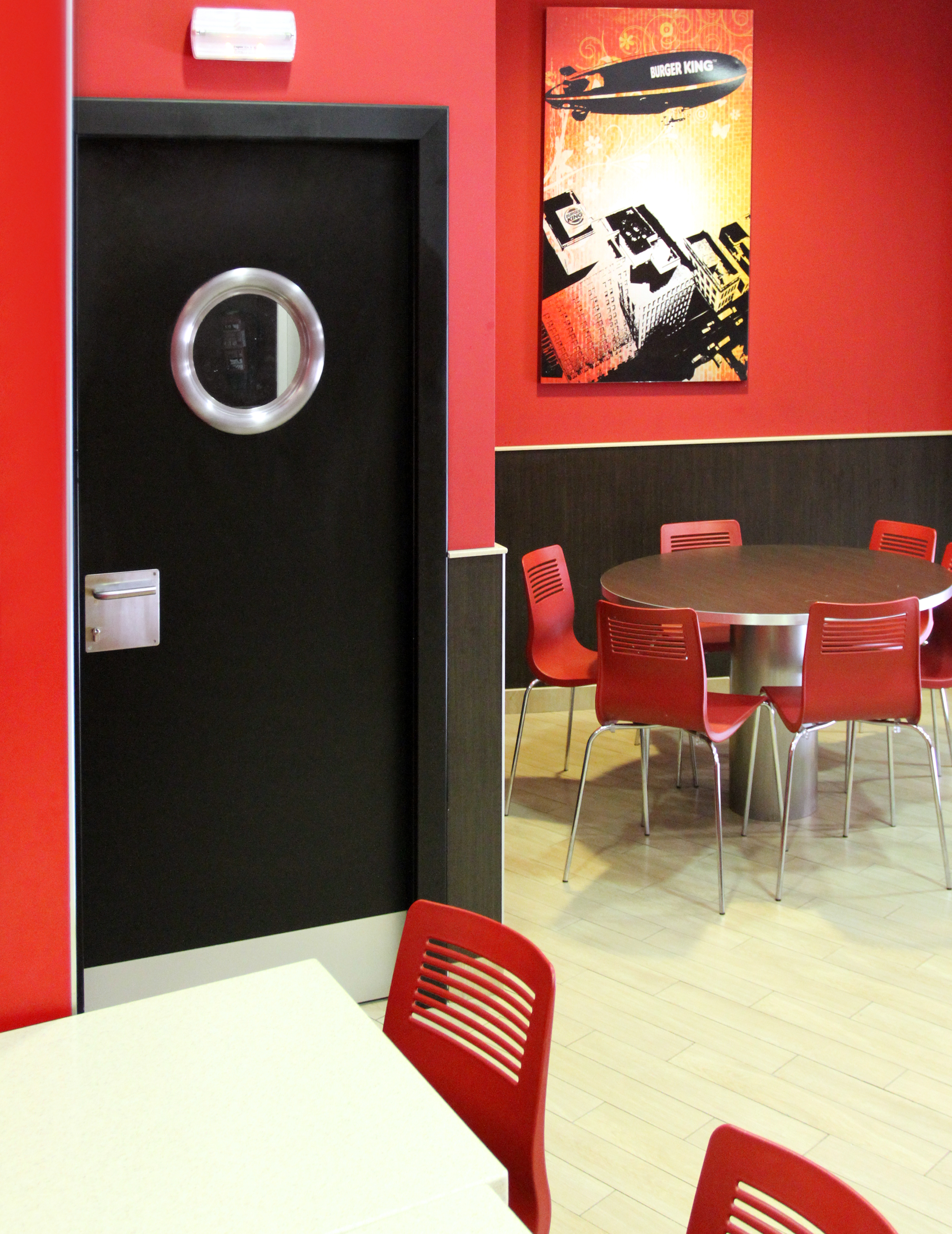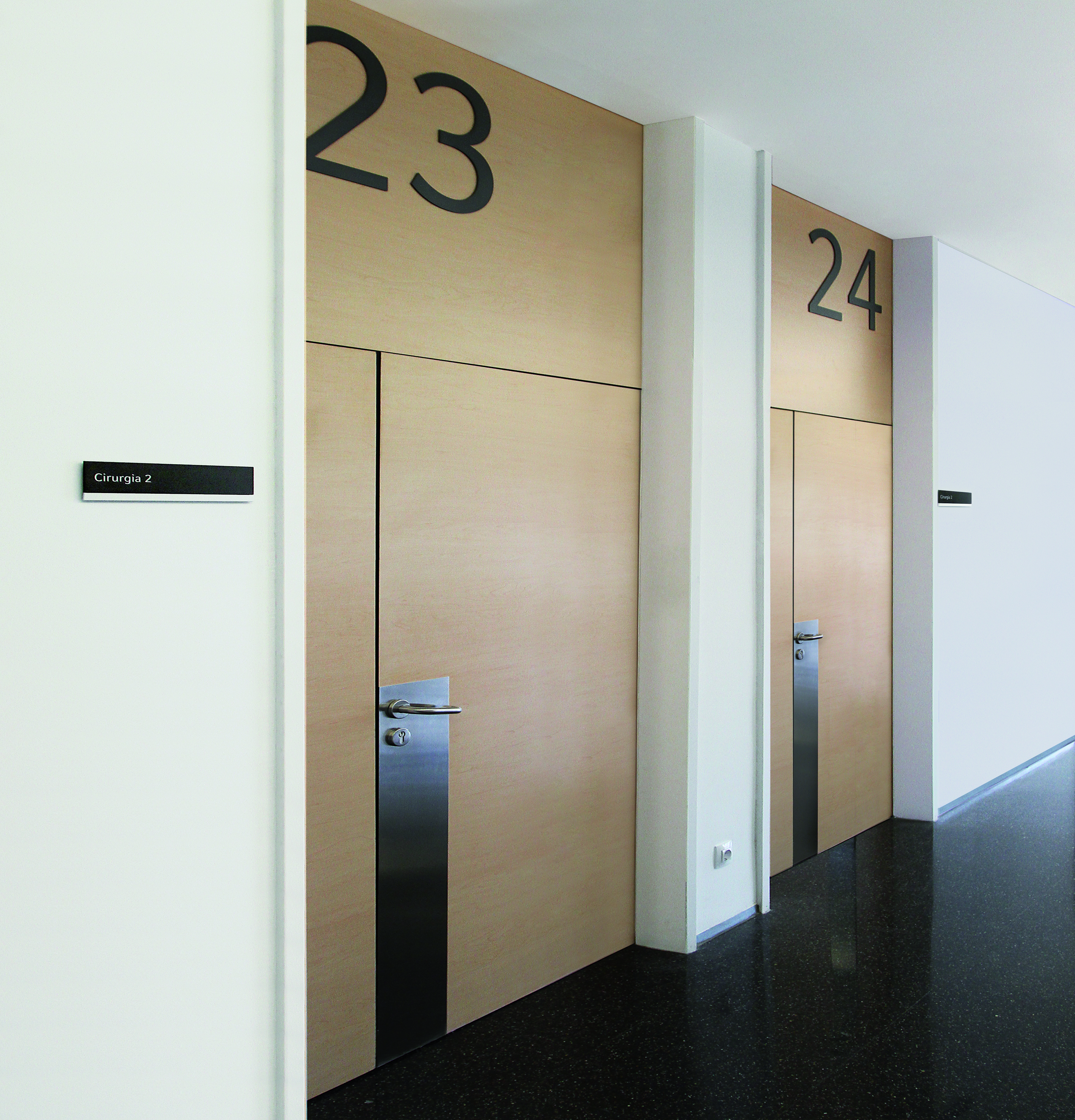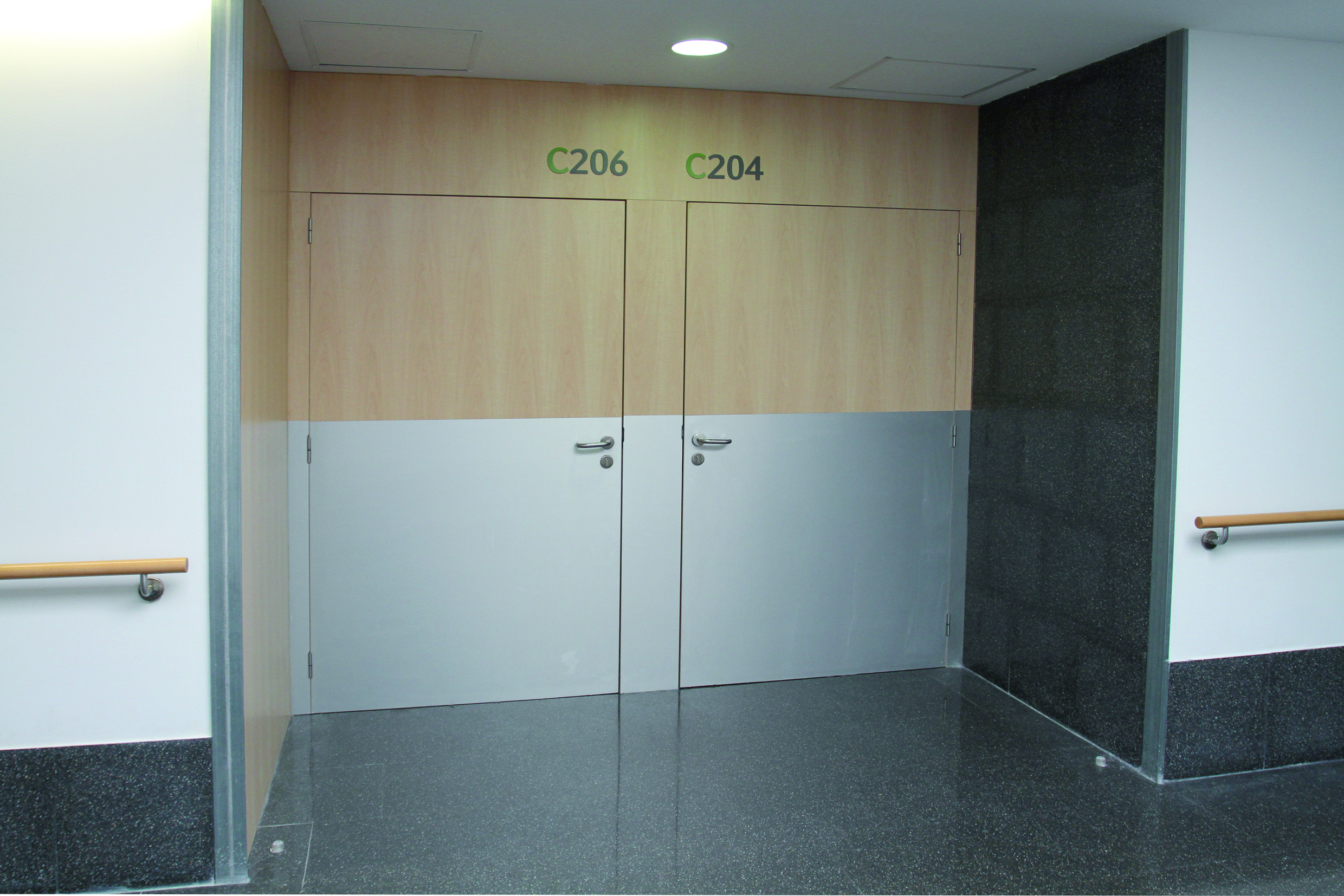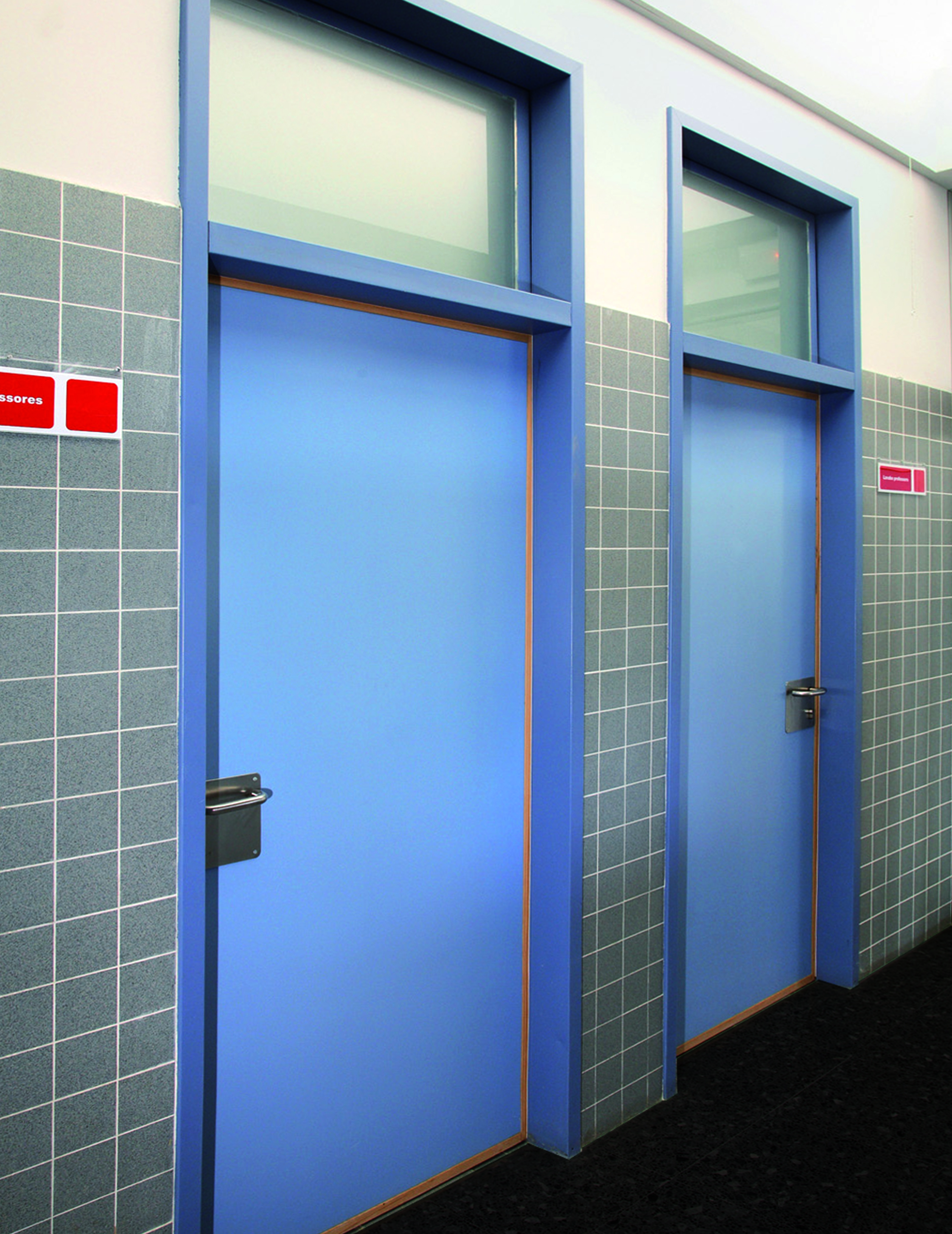 Soleco frames are finished in textured matt or high Gloss colours. A full range of veneers, laminates or paint finishes can be specified for the doors with vision panel and hardware options.